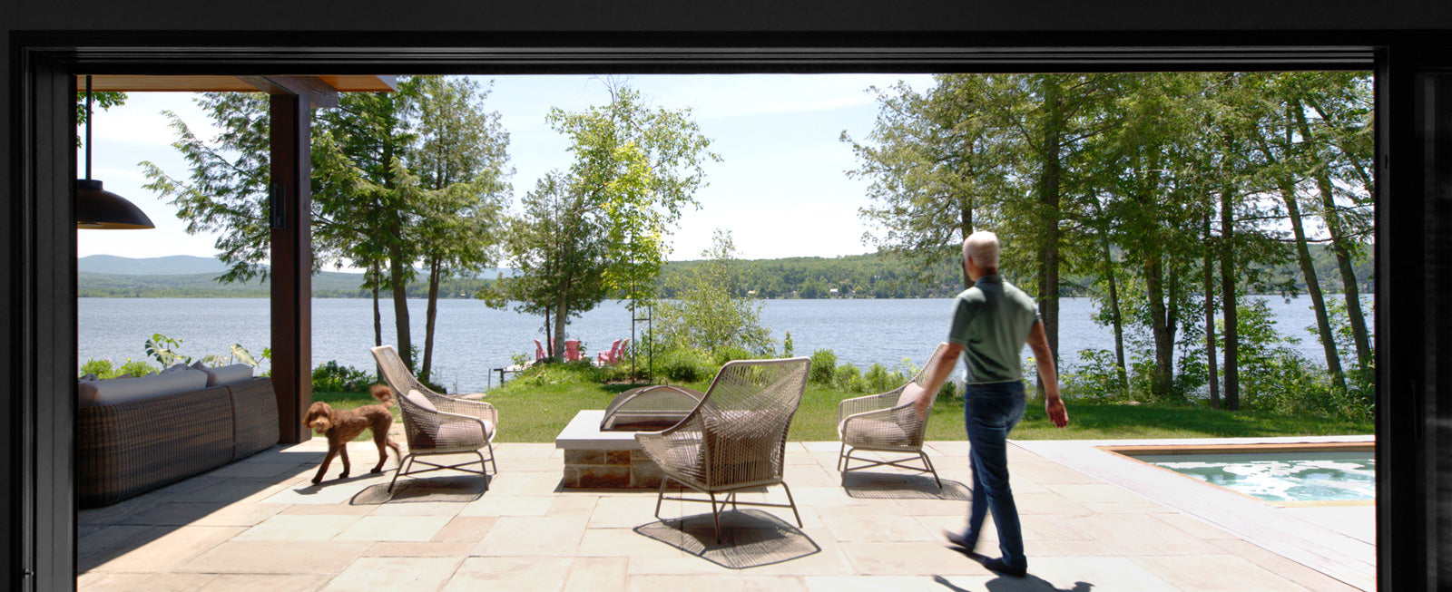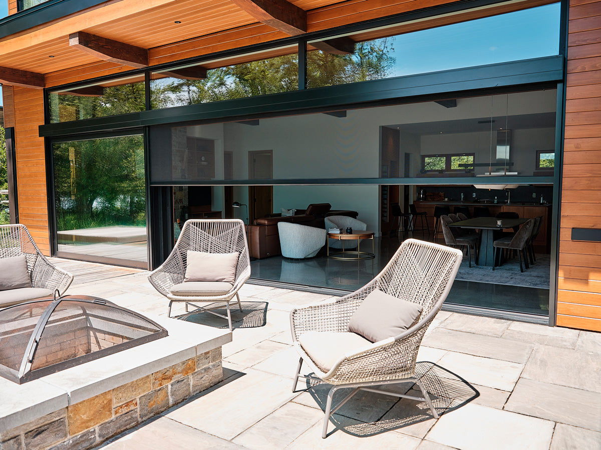 Embracing the spirit of open living, the design introduces a striking 30-foot opening that extends from the main living area onto the terrace, offering uninterrupted views of the lake. Here, the line between indoors and out dissolves, creating a seamless transition to outdoor living for relaxation, dining, and gathering. Whether within the home with the doors open or beneath the pergola, the lake remains the constant focal point—ever present, ever in view.