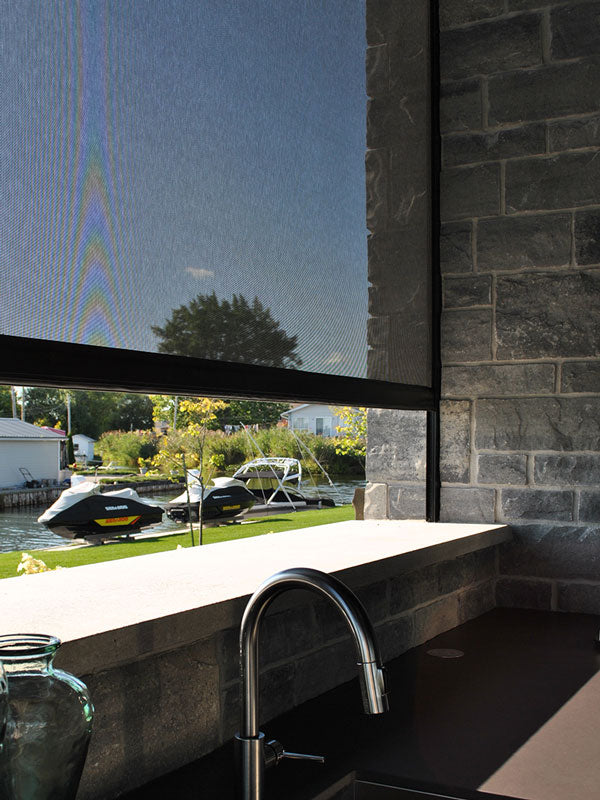 A superior strength vinyl coated polyester offering excellent visibility with 50 or 60% openings. Ideal protection against bugs. Light protection against the wind, preserving a comfortable outdoor sensation. Available only in black for maximum transparency.