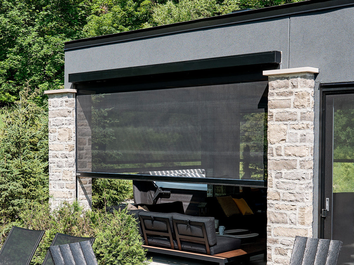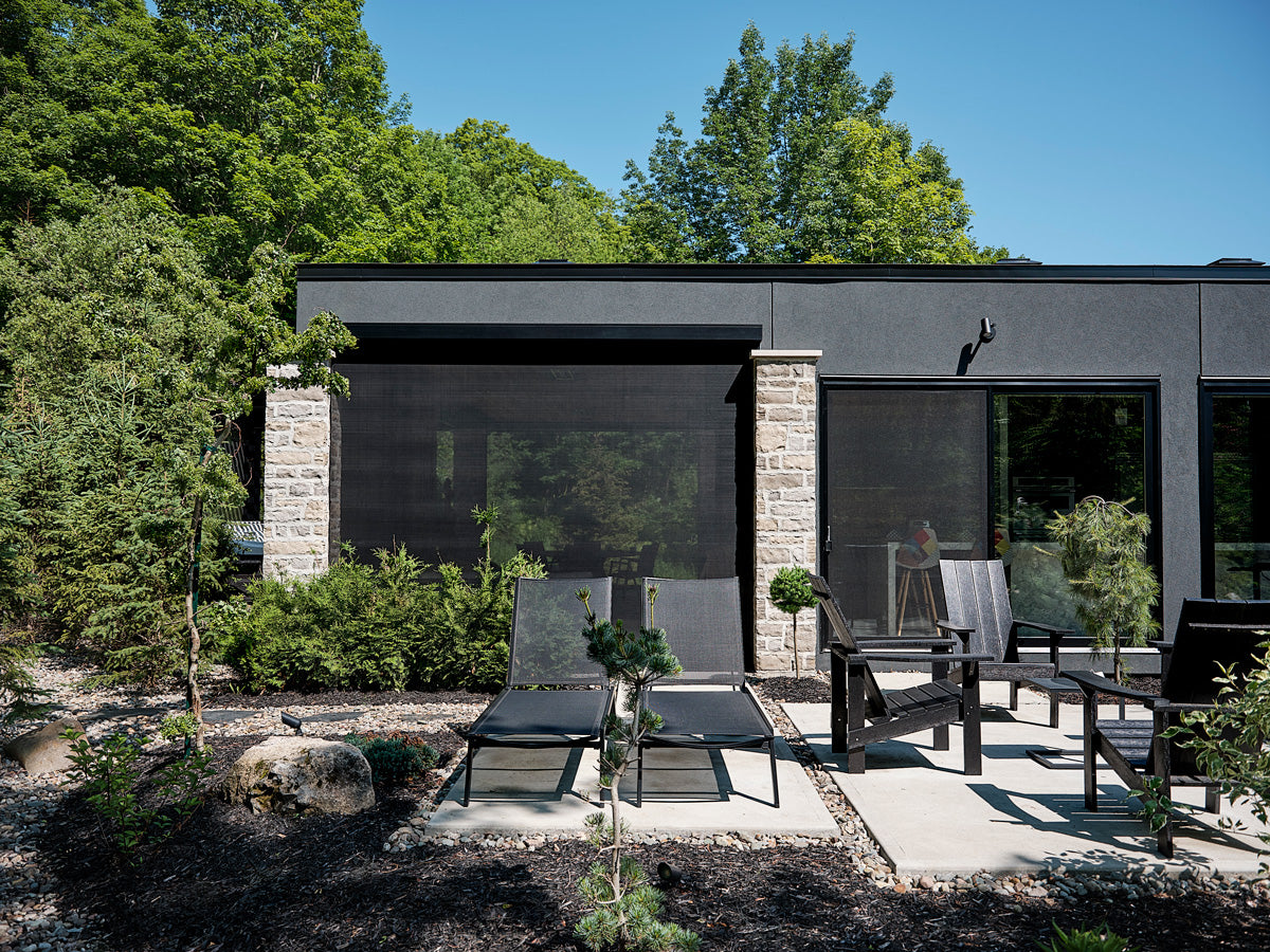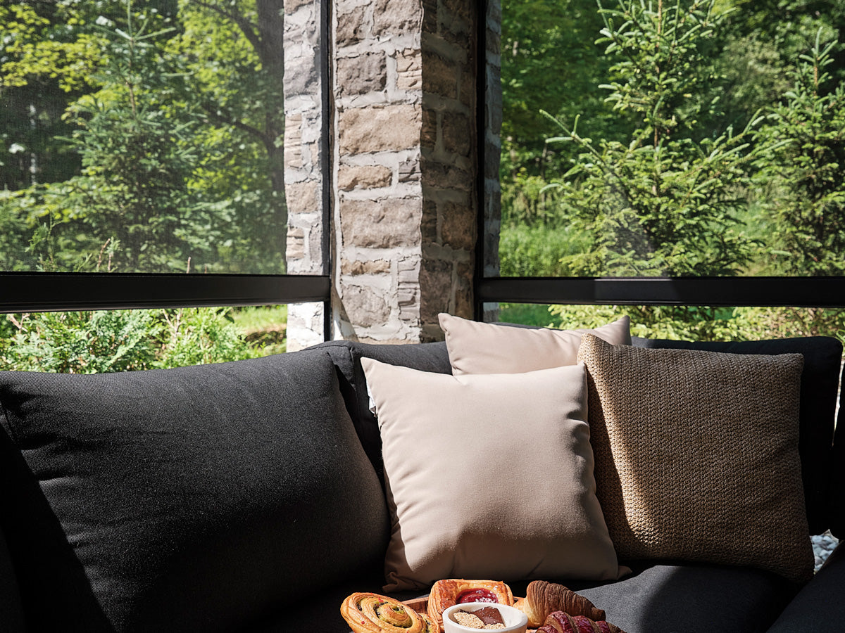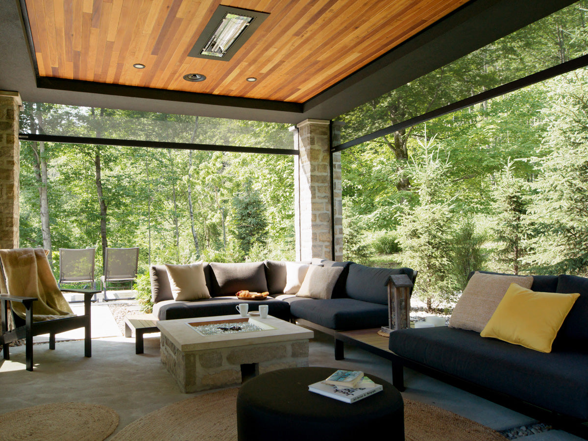 Le client imaginait un refuge s’ouvrant sans effort sur l’extérieur tout en préservant un haut degré de confort. Ainsi, chaque élément a été soigneusement choisi pour honorer l’environnement naturel avec des moustiquaires motorisées sur mesure et une pergola bioclimatique motorisée avec des lames orientables qui s’ajustent d’un simple geste. Des chauffages Infratech ont été intégrés au plafond de la structure de terrasse existante afin d’adoucir la fraîcheur des soirées d’été et de prolonger le plaisir de l’extérieur jusqu’à l’automne. Conçus en aluminium durable et écoresponsable, toutes les composantes s’intègrent harmonieusement au paysage. Ici, s’aventurer dehors n’est jamais un compromis — c’est une invitation à la lumière, à la clarté et à un lien renouvelé avec la nature.