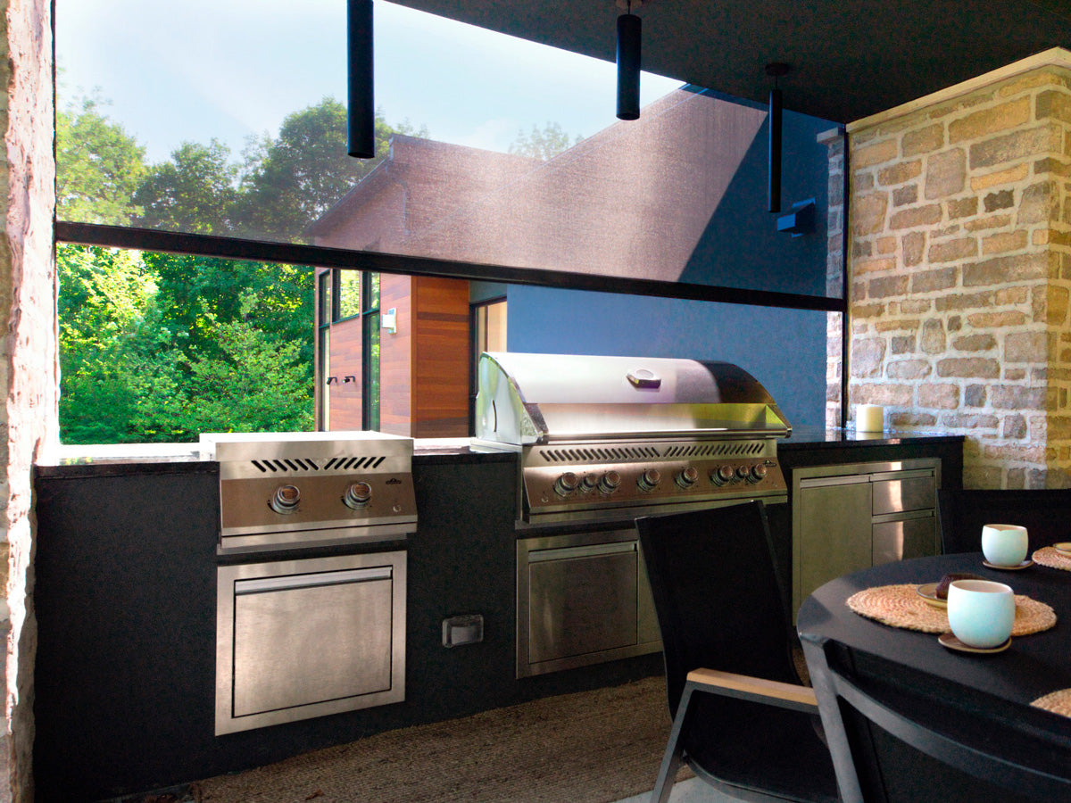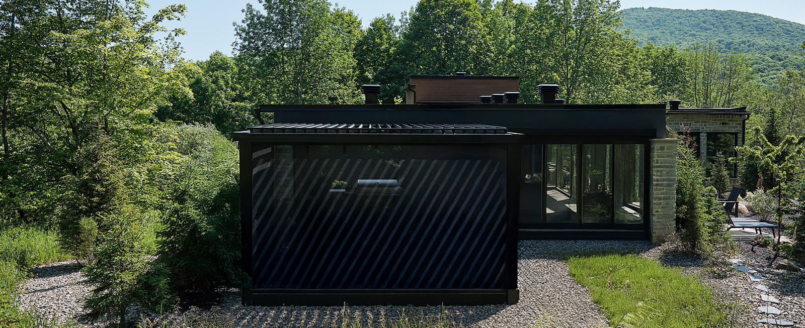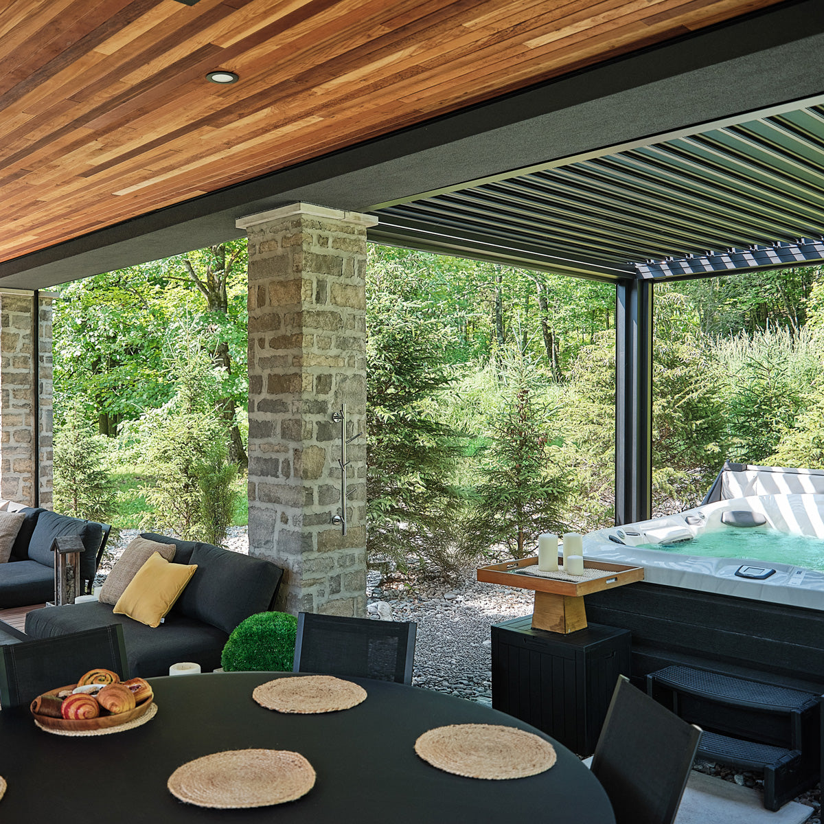 Le client imaginait un refuge s’ouvrant sans effort sur l’extérieur tout en préservant un haut degré de confort. Ainsi, chaque élément a été soigneusement choisi pour honorer l’environnement naturel avec des moustiquaires motorisées sur mesure et une pergola bioclimatique motorisée avec des lames orientables qui s’ajustent d’un simple geste. Des chauffages Infratech ont été intégrés au plafond de la structure de terrasse existante afin d’adoucir la fraîcheur des soirées d’été et de prolonger le plaisir de l’extérieur jusqu’à l’automne. Conçus en aluminium durable et écoresponsable, toutes les composantes s’intègrent harmonieusement au paysage. Ici, s’aventurer dehors n’est jamais un compromis — c’est une invitation à la lumière, à la clarté et à un lien renouvelé avec la nature.