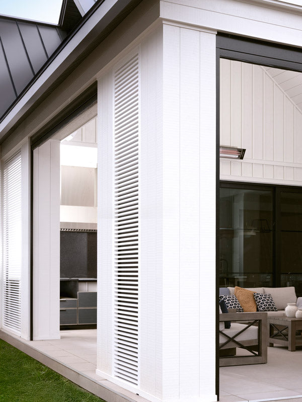 Our design walls create intimate, inviting outdoor spaces with just the right amount of shelter and style. Choose between linear or angled blades to customize the look.
